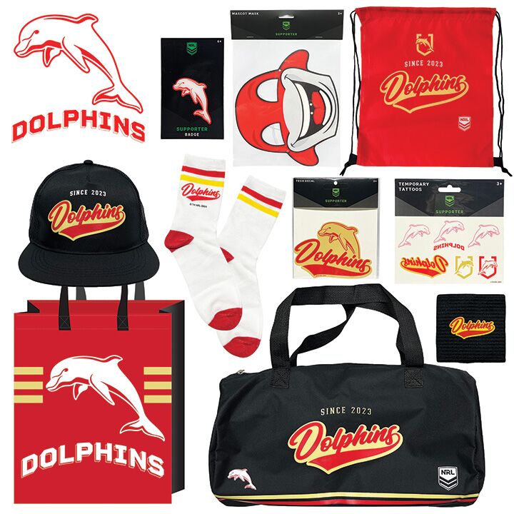 Created for passionate Dolphins fans, this showbag is packed with must-have supporter gear to rep your team in style. Carry your essentials in the Dolphins Duffle Bag, Drawstring Bag and handy Reusable Bag — perfect for school, training or heading to the game.