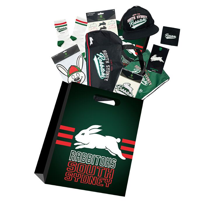 Show your red and green pride with the official NRL South Sydney Rabbitohs Showbag