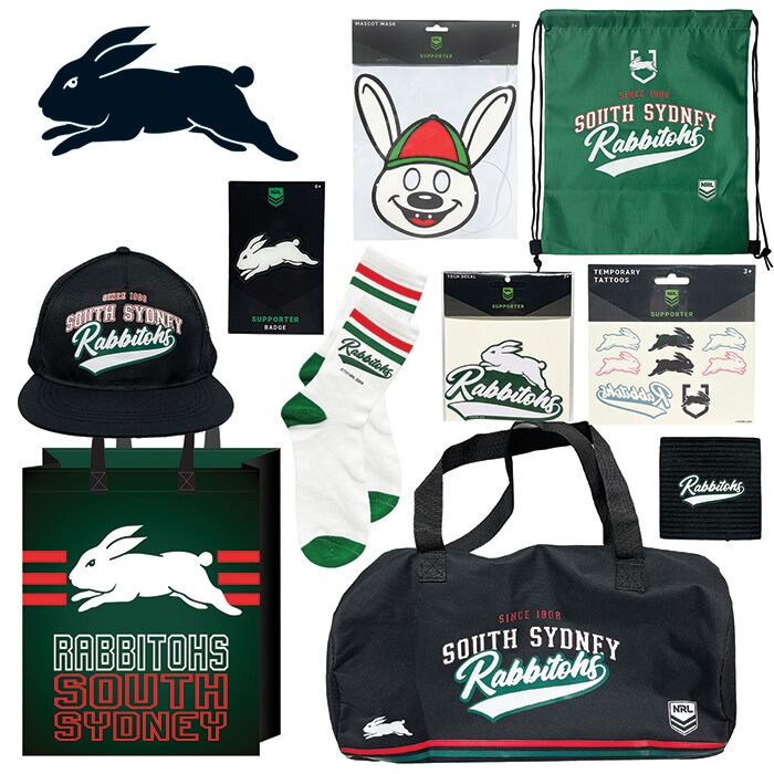 Complete your supporter look with the Rabbitohs Flat Cap, comfy Socks and Mask, and turn up the team spirit with the Arm Band, Acrylic Badge and Temporary Tattoos. You can even customise your devices with the included Tech Decals for that extra touch of Bunnies pride.