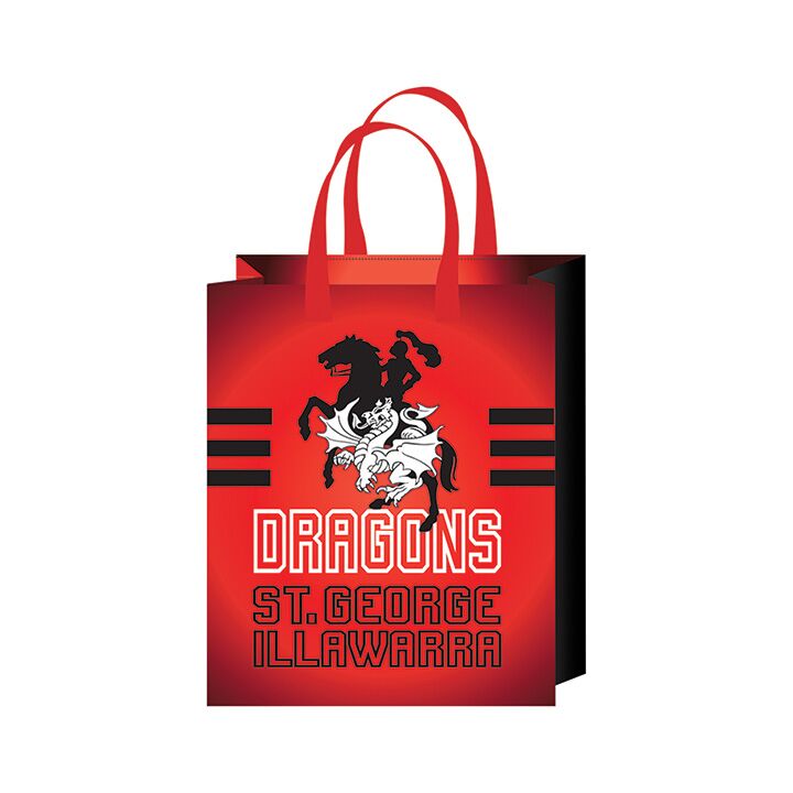 Made for proud Dragons supporters, this showbag is packed with must-have merch to showcase your red and white pride all season long. Carry your essentials with ease using the St George Illawarra Dragons Duffle Bag, Drawstring Bag and handy Reusable Bag — perfect for school, training or heading to the big game.