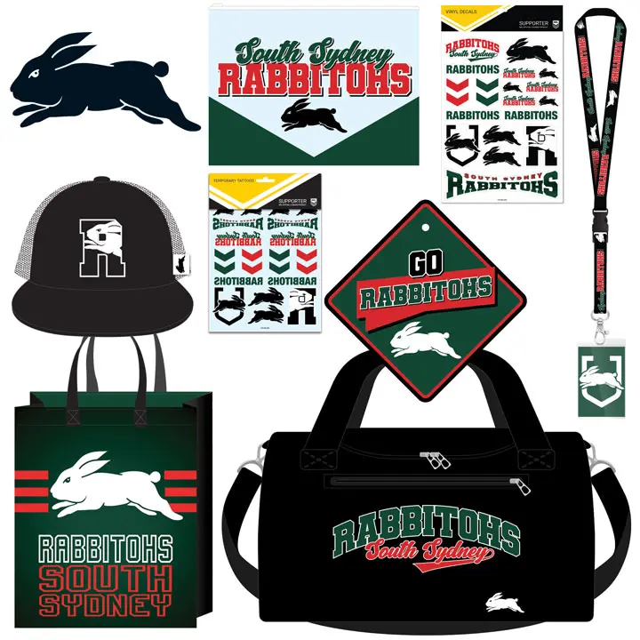 Show your Rabbitohs pride with this must-have showbag, packed with a pencil case, decals, lanyard, car sign, temporary tattoos, cap, duffle bag, all in an official reusable tote bag. Perfect for showing your support for the NRL team whether you’re heading to a game or just around town.